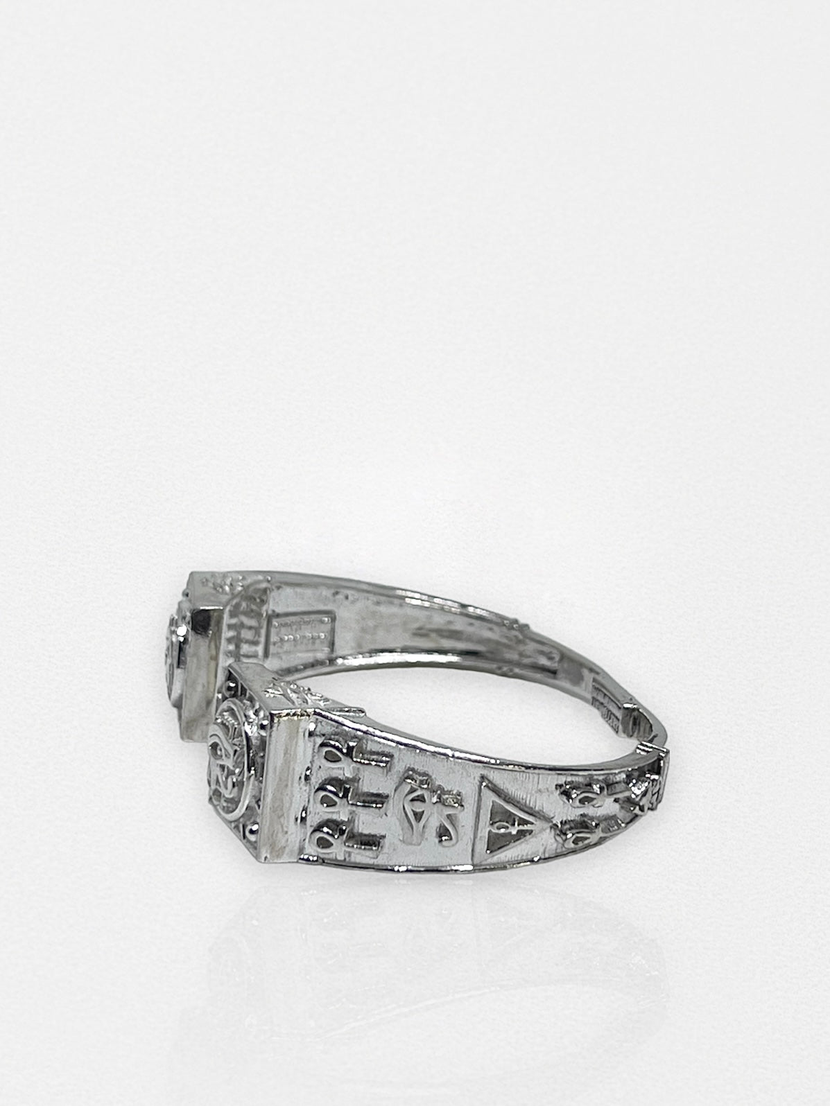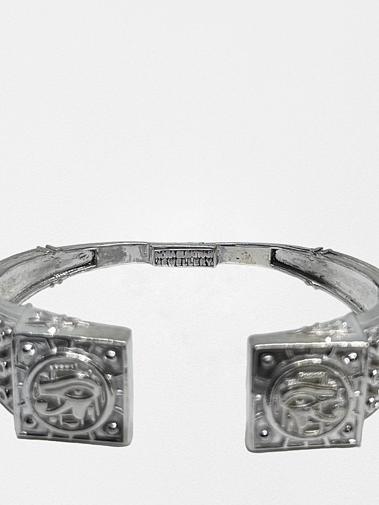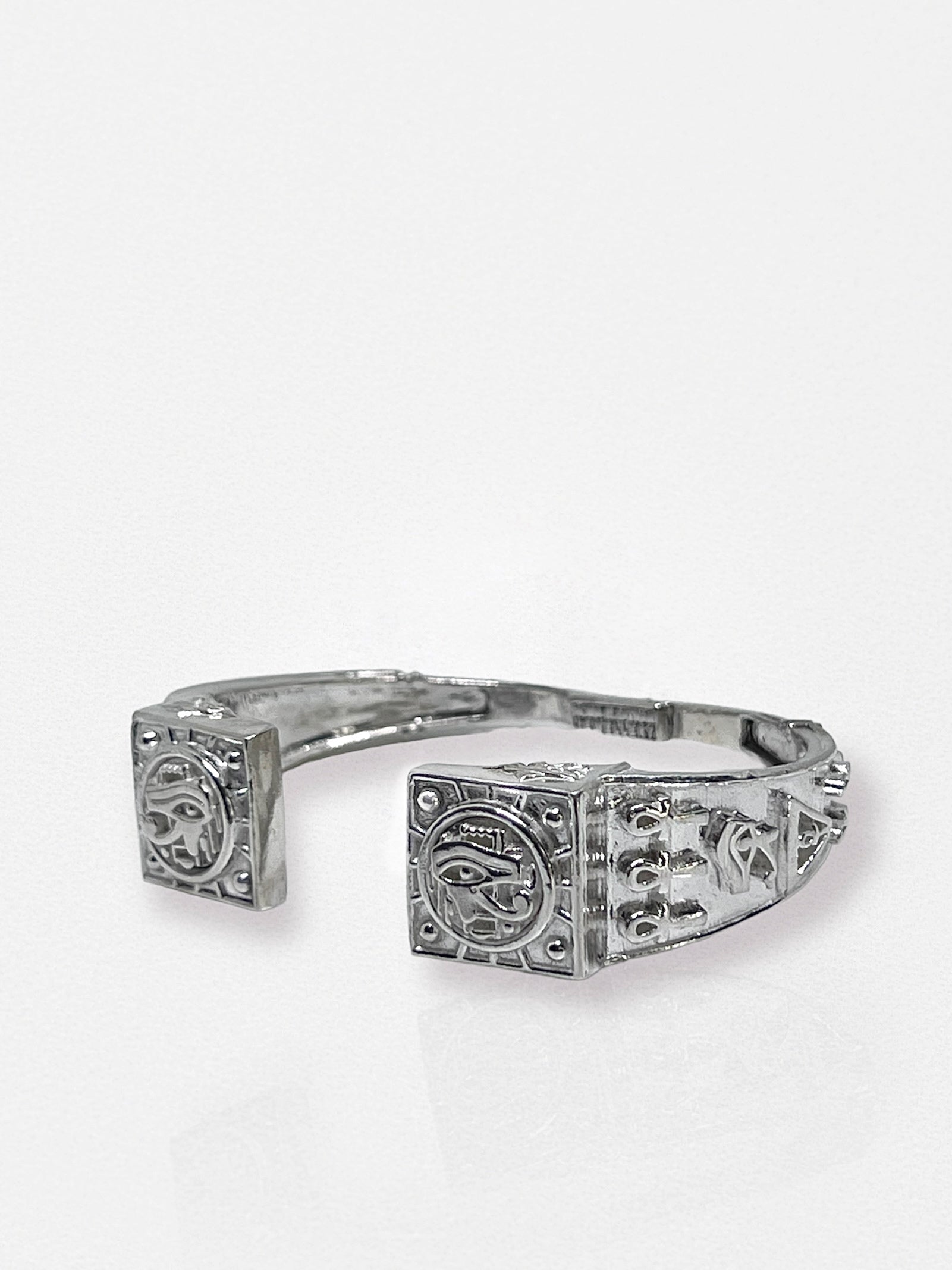This bracelet is handcrafted with extremely detailed ancient Egyptian symbols that makes it simply a masterpiece that gathers together the Horus eyes, Ankh and scarab.