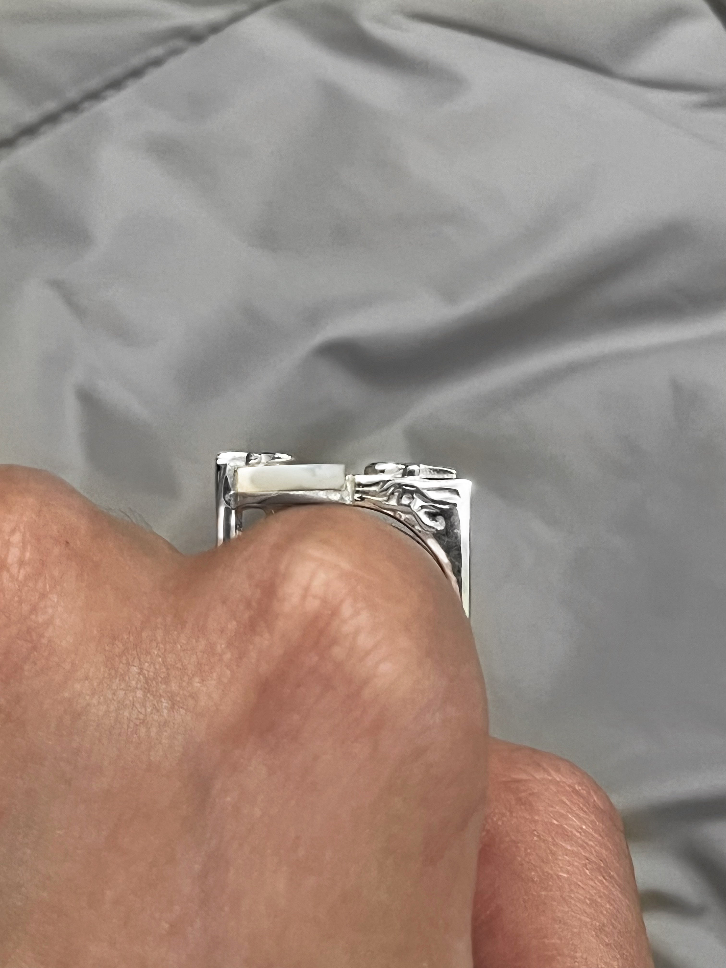 The piece is handcrafted from highest quality of pure sterling silver 925k, adorned with Gold vermeil and natural mother of Pearl